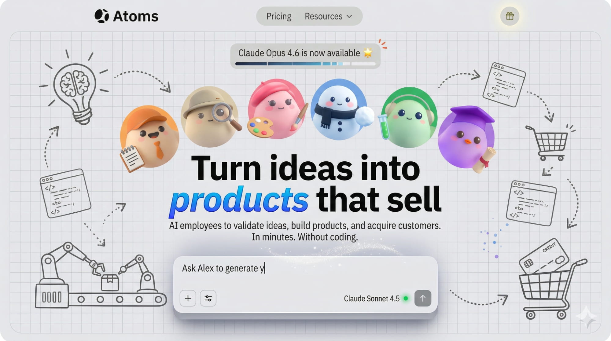 | Today’s Spotlight | | You don't need to code an app yourself or manage the build. | Atoms gives you a full team of AI employees (engineers, product managers, analysts, researchers) who handle the entire process. | Describe what you want, and they take it from product design through deployment (auth, database, Stripe payments, and hosting come standard). | Launch on your own custom domain the moment your app is ready. Export your code or sync to GitHub as your project scales. Built-in AI integrations with zero API key setup required.