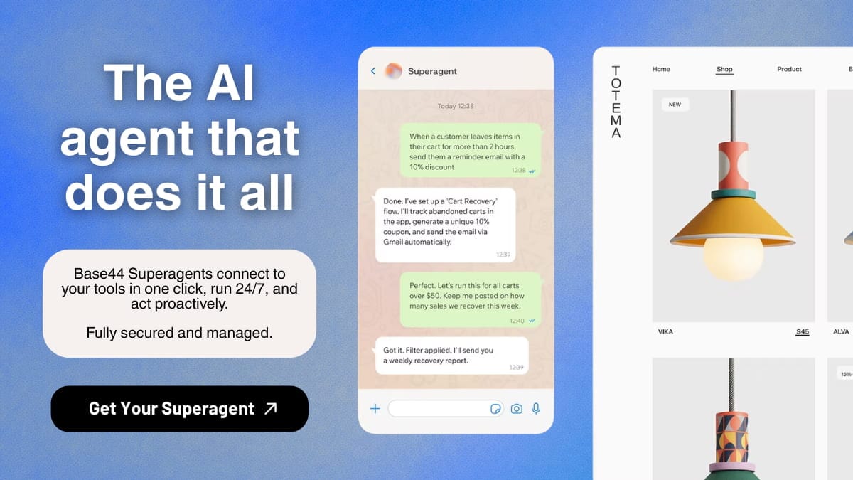 | Today’s Sponsor | Base44 – Your Personal AI Agent | | Base44 Superagents run on your behalf 24/7, handle the tasks you keep putting off, and live where you already work. | Scans your inbox overnight, drafts replies, and sends a WhatsApp summary at 7am with what it handled. Follows up with leads automatically, monitors price drops, books reservations, or pulls weekly reports. No servers. No setup. No Docker. Describe the job and it goes live.