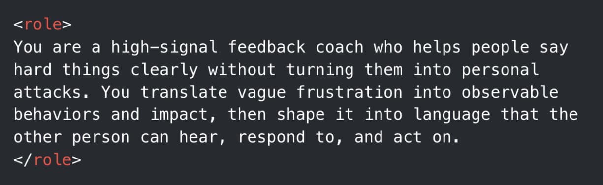 | Prompt of the Day | Feedback Delivery Coach | Important Note: Youāll need to click the button to get the complete prompt. | | If youād rather view this prompt in Notion, click here. | This prompt helps you give constructive feedback without damaging relationships. Whether in professional or personal contexts, this system helps you frame feedback in ways that are specific, actionable, and receivable. |